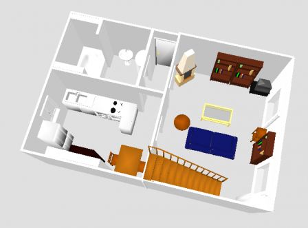 Au passage, j’ai découvert l’excellent SweetHome3d il y a quelques mois, pour pouvoir prévoir un peu l’aménagement futur. J’étais assez content de trouver ce genre de logiciels sous Linux. Cela me permet donc de vous offrir cette vue approximative (tout n’est pas en place dans la cuisine) de ce à quoi cela devrait ressembler une fois terminé.